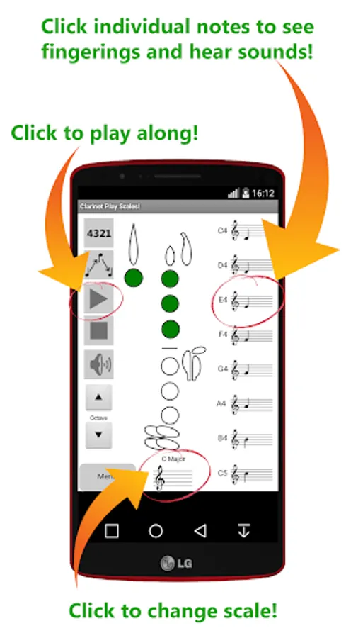 Practise scales on the clarinet by playing along with the app!