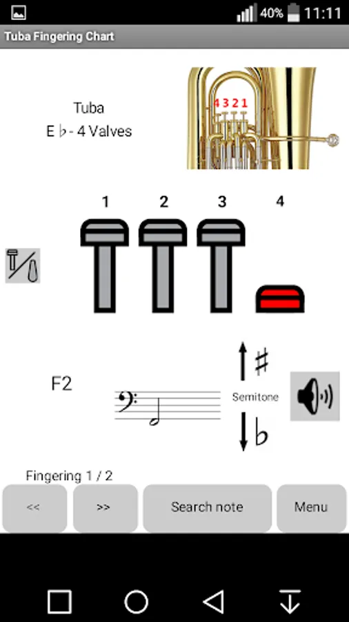 A simple app for Tuba fingerings.