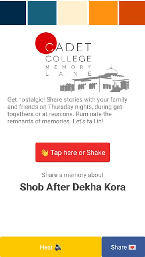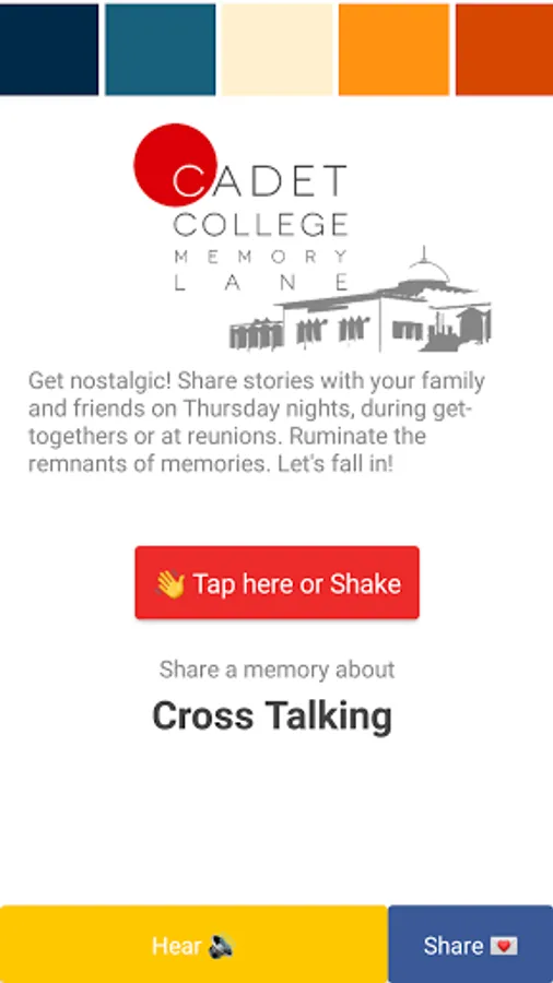 Cadet College Memory Lane is an app exclusively designed for ex-cadets, and their friends and families. It will also give a very brief idea about the terms used in Cadet College to non-cadets.