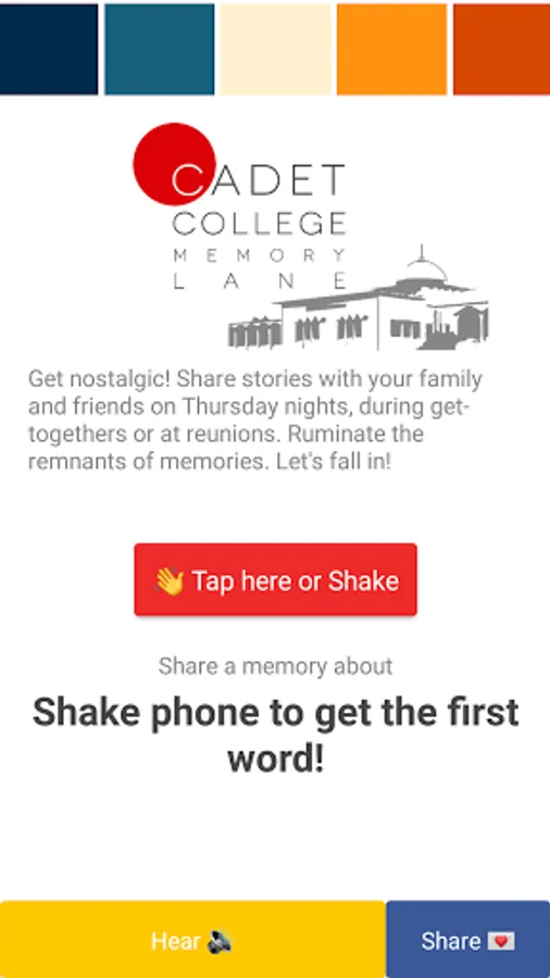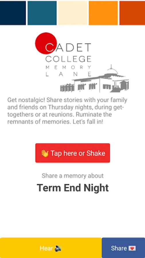You can also use this app to write stories about your experience related to a term you find from the app, and share that story in social media; if you do please use the hashtag #cadetcollegememorylane