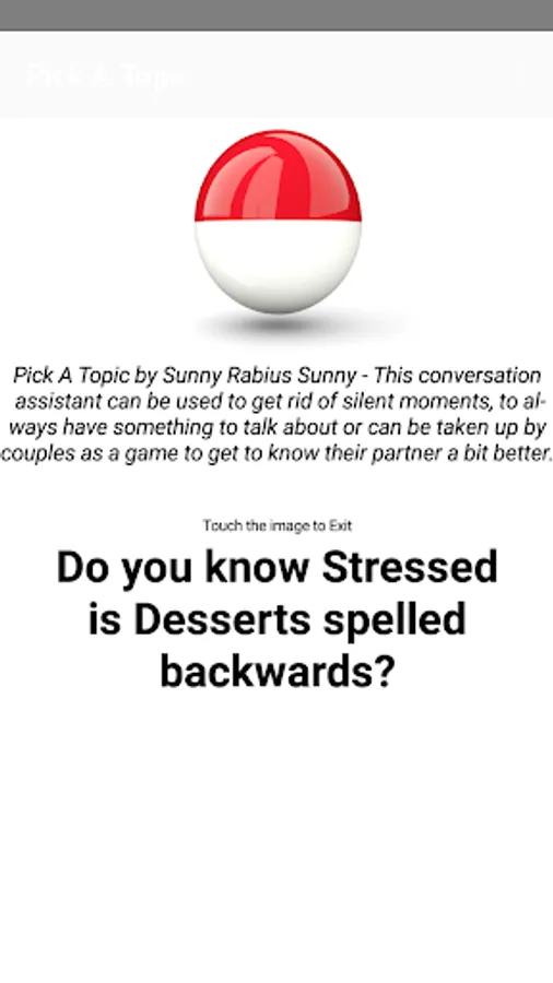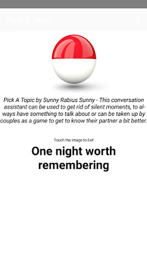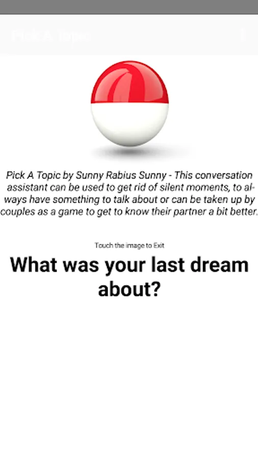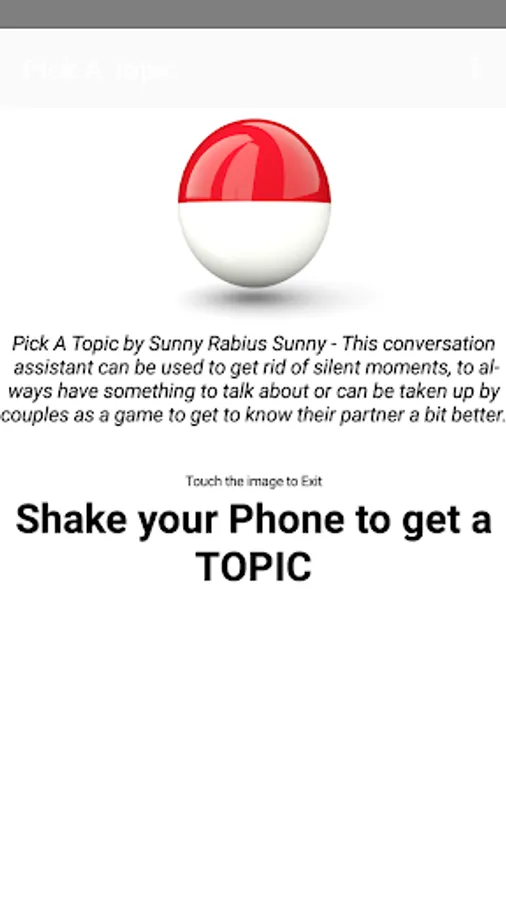 Out of topic? Getting bored in a conversation? Just shake your phone to get a super interesting topic to talk about. This will definitely break awkward silence.