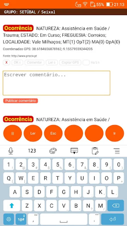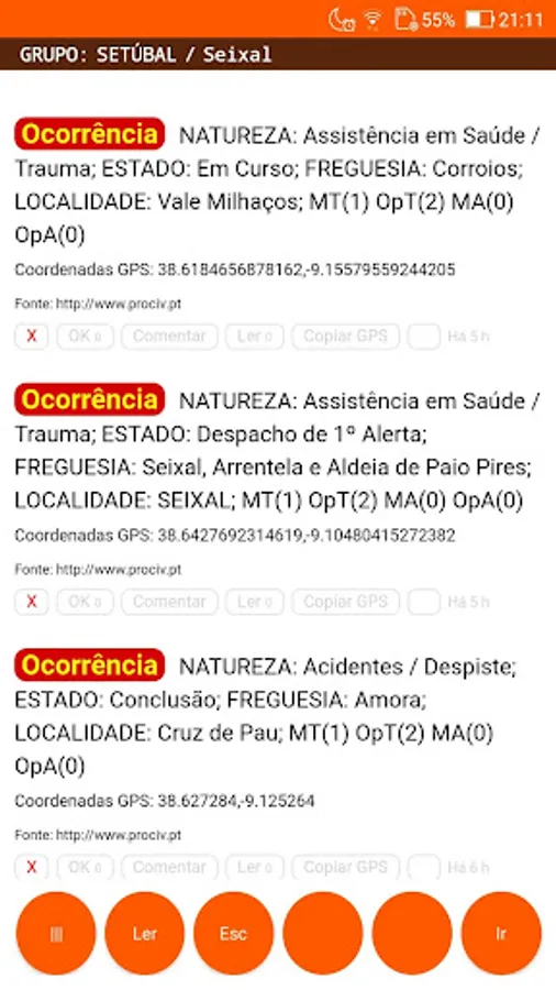 It shows us the Occurrences and Events described by users related to civil protection in Portugal by district and municipality and allows us to put App users belonging to the same group in contact.