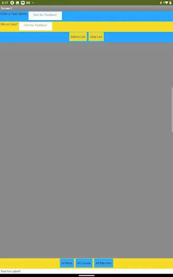 You type in the team you beat or lost to, select if you won or lost, then press add to list. It is then automatically added to the win or loss list.
