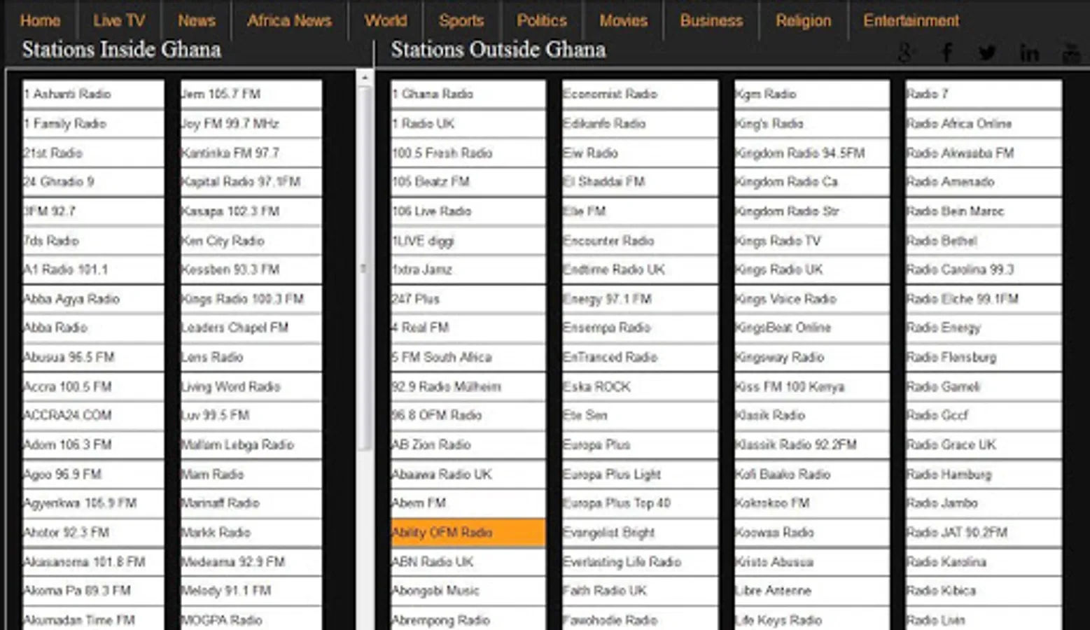 Ghana FM Radio Stations plus worldwide radio stations, Adom Fie FM, Ability OFM Radio, Accra24, EndTime Prayer Radio, Mogpa Radio, Sources radio, Adom fm, peace fm ghana, Nhyira FM, kofi tv, ghana radio stations online, Ghana radio stations, Ghana tv stations, online radio, internet radio, fm radio stations, adom fm ghana, radio stations online, ghana gospel music, ghana web radio, adom fm ghana and ghanaweb radio.