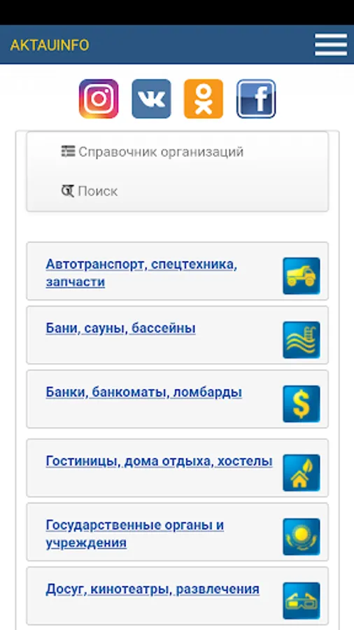 The application "Aktauinfo" is a convenient tool that will allow you to find all the necessary information about public and private organizations in the city of Aktau.