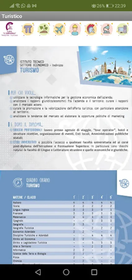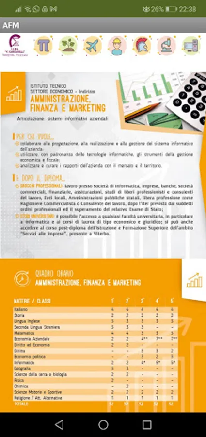 The app wants to make known the addresses of studies of the Cardarelli Institute of Tarquinia, reflecting the paper brochure with information about the timetable and the professional opportunities of each educational path.
