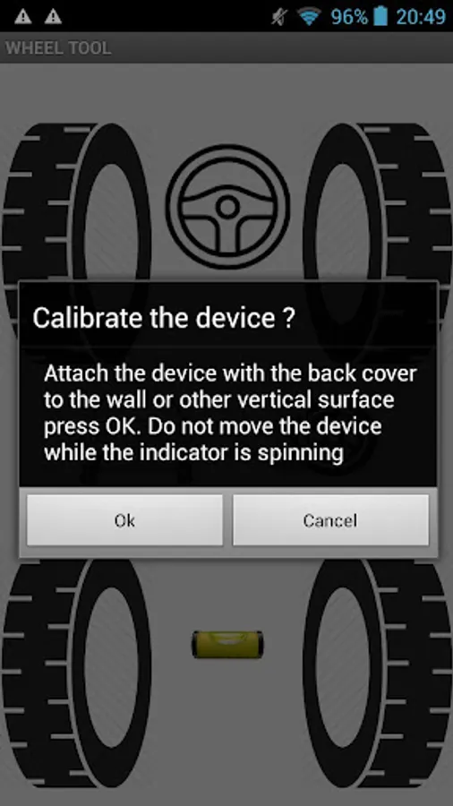To calibrate your device by placing it vertically (for example, attach the back cover of the device to the vertical wall) and clicking on the green image of the level.