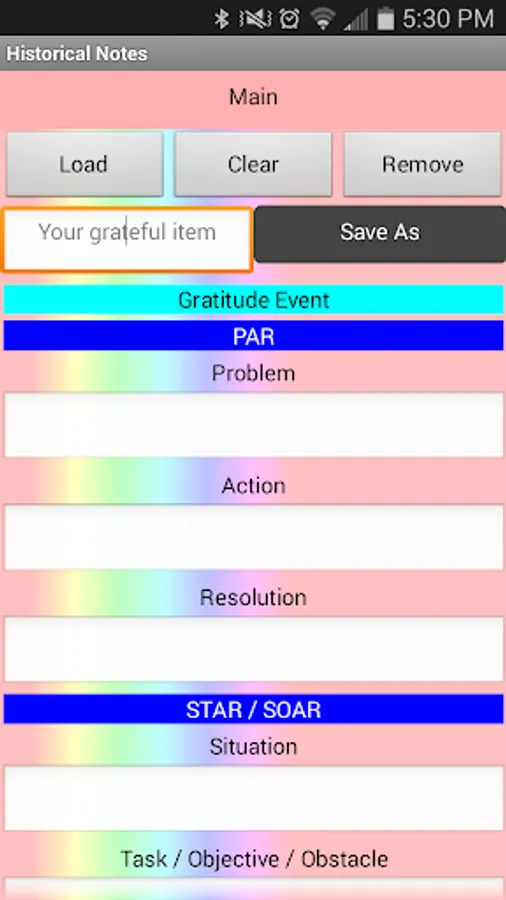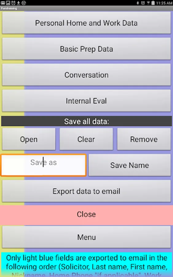 Please note: The database inside the app is global so do not use the exact same name twice when saving in different areas of the app. This can cause an exception and overwrite data in other areas.