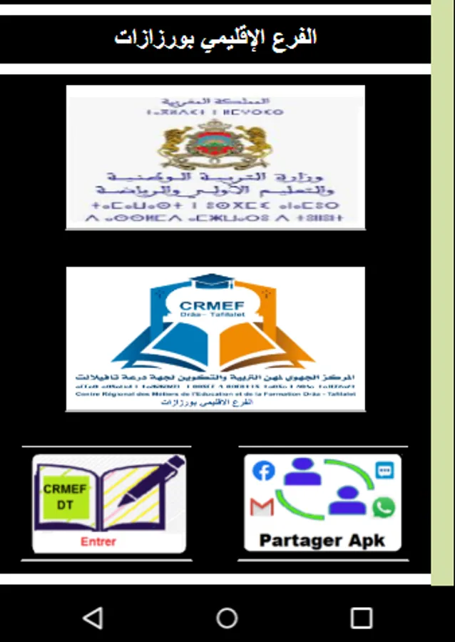 The purpose of this mobile application is to facilitate communication between all the executives of the regional center for trades in training and education annexed to Ouarzazate.