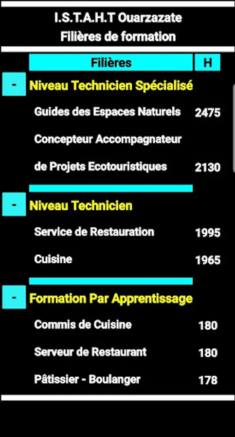 - The streams available in the specialized institute for applied technology and tourism in Ouarzazate fall into three categories: