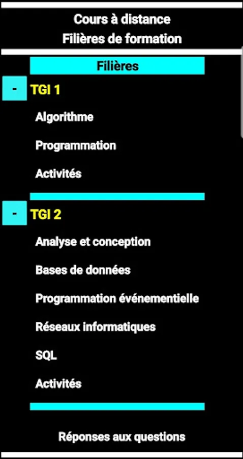 Application allowing to diffuse different courses, computer science of different school or professional levels, with the possibility of asking questions online when reading the courses.