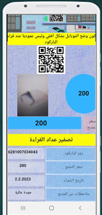 The user can read an infinite number of products and gives the price of each product separately, then gives the total prices of the products that the user has read the barcode of, as in the cashier machines