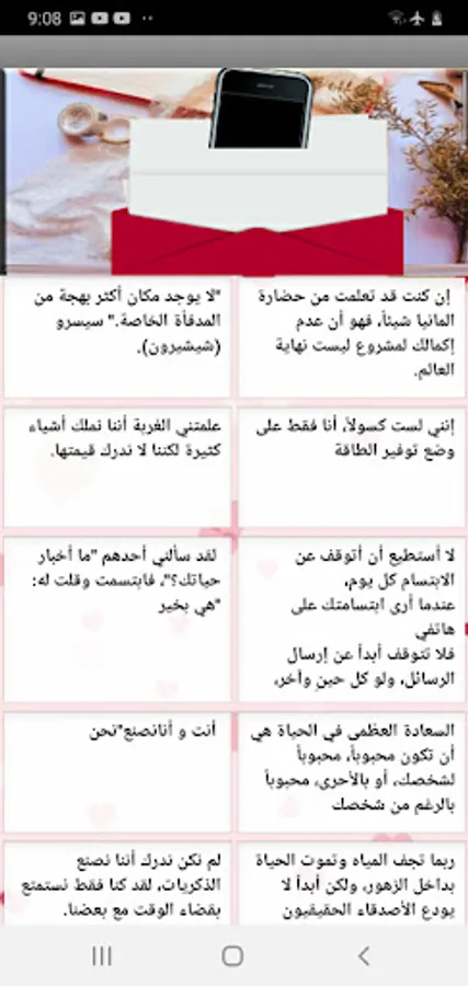 The application contains a lot of ready-made messages. Once you click on them, they are sent directly to the WhatsApp application installed on the user's device ...