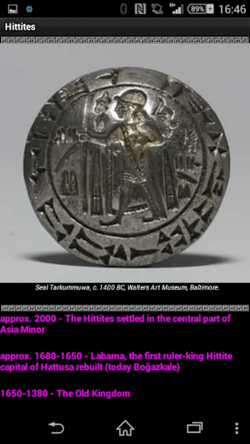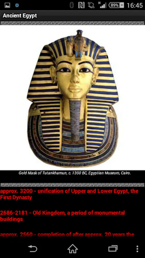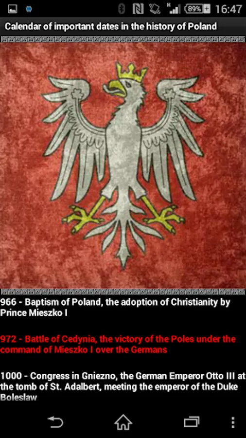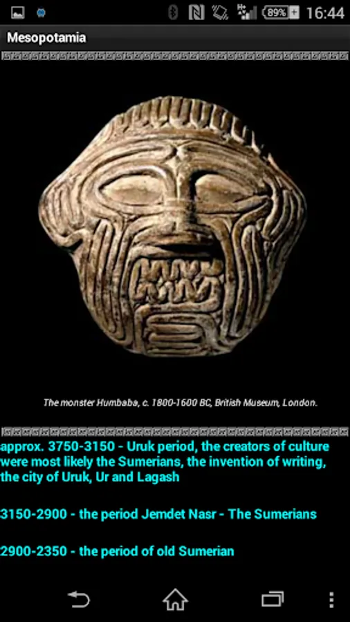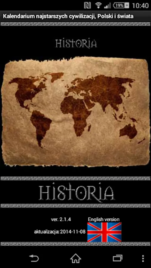 The application presents a timeline of major historical events the oldest ancient civilizations in world history, as well as Poland history, general history of the world and division of prehistoric and historic periods of human history. At each calendar presented are selected museum exhibits and monuments characteristic of civilization.