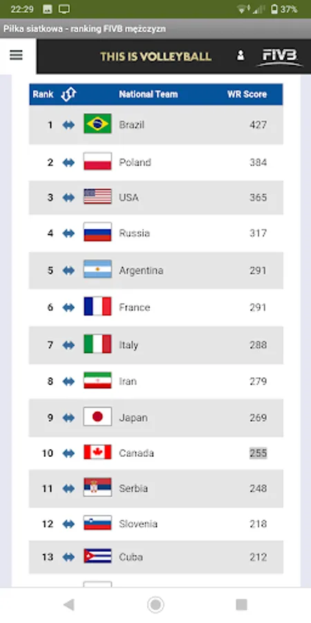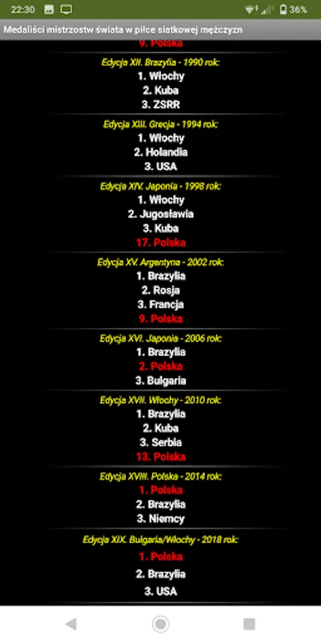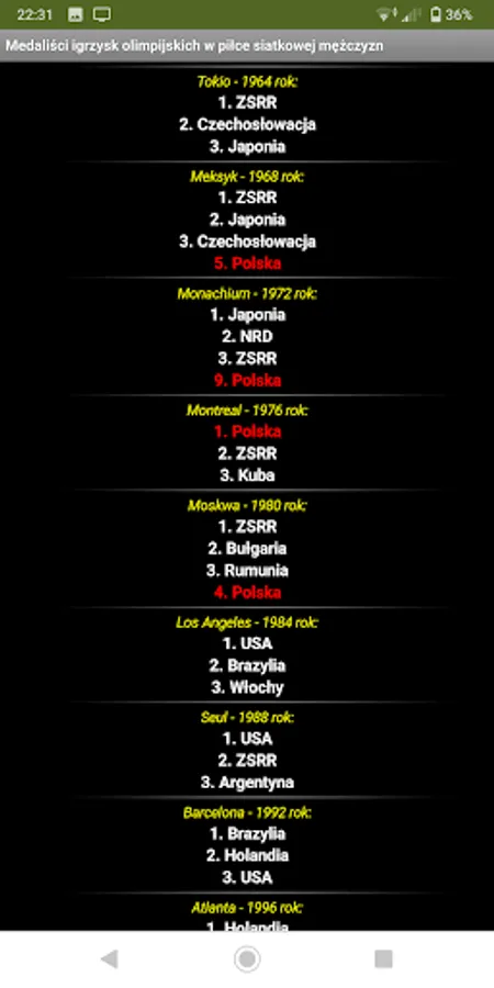 The program with access to current sports rankings and lists of medalists of selected sporting events.