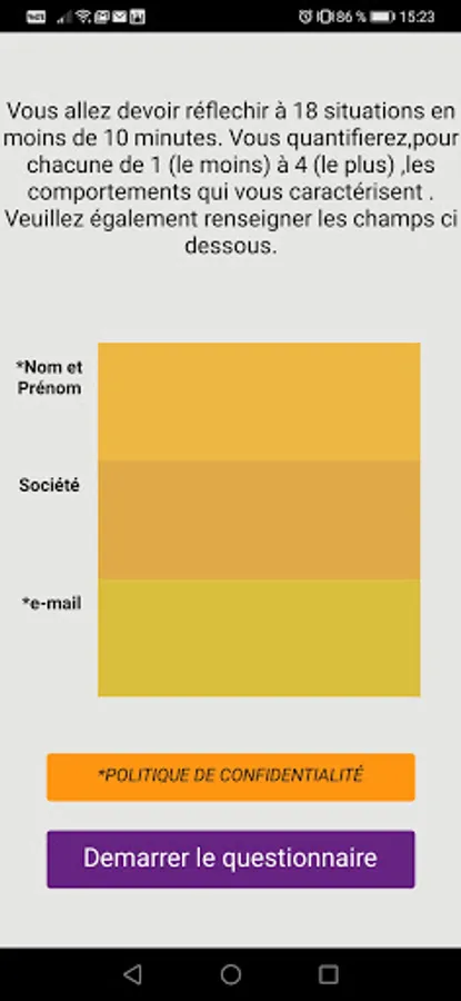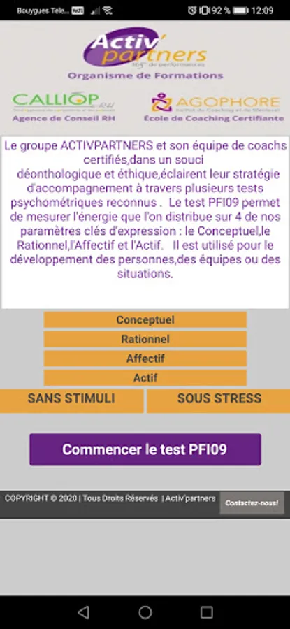 The course of the PFI 09 test has 18 parts and contains 4 statements for each part.