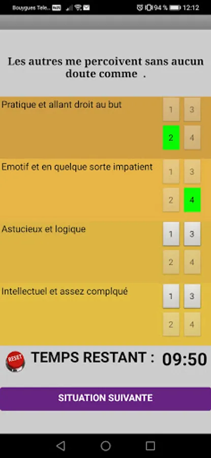 Check your answers according to the behaviors that characterize you the most, from 1 (which suits you the least) to 4 (which suits you the most).