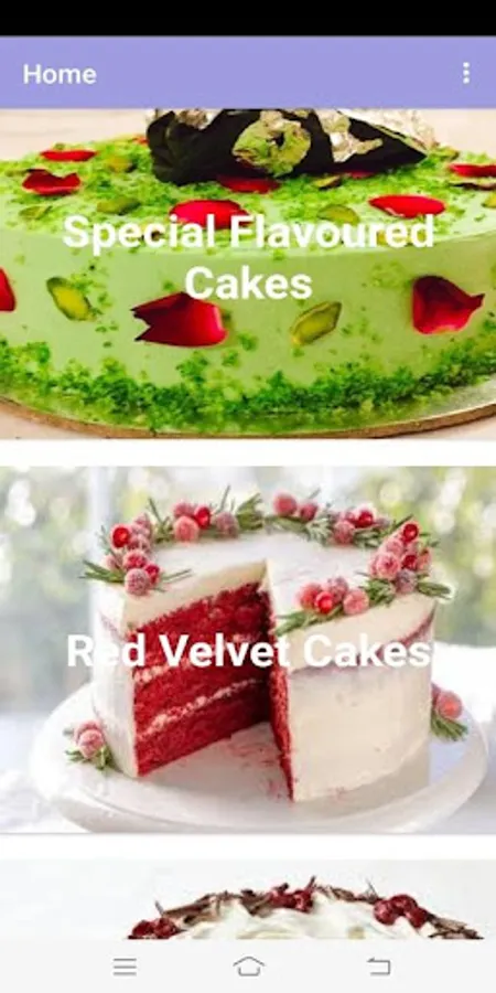 1. Strawberry Cake 2. Vanilla Cake 3. Chocolate Cake 4. Mango Cake 5. Butter scotch Cakes 6. Red Velvet Cakes 7. Black & White Forest Cakes 8. Black & White Truffle Cakes 9. Photo & Designer Cakes 10. Pasteries