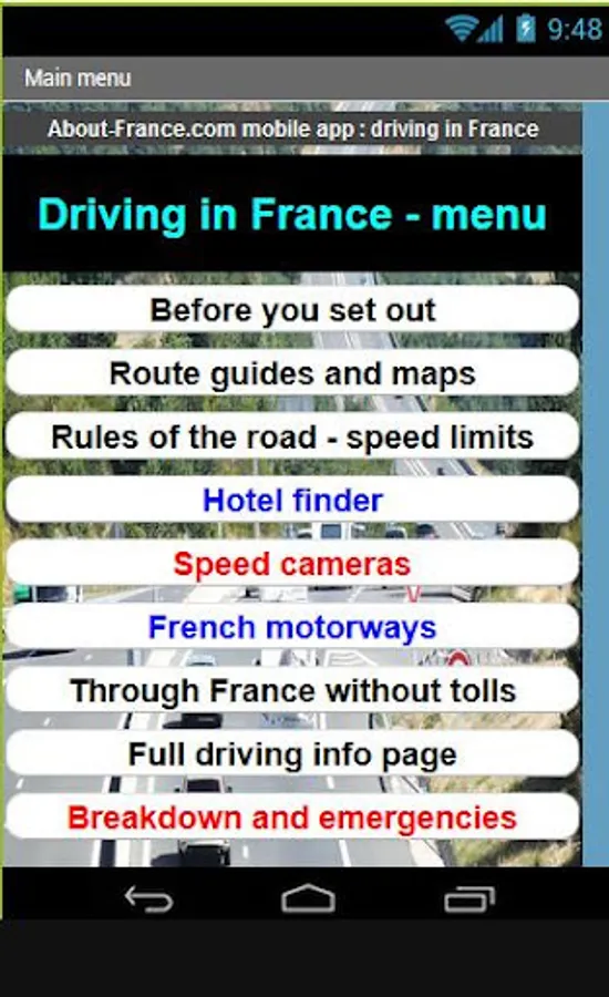 Produced by a small team based in France, and with an extensive and long-standing experience of driving in France, and the issues often confronted by drivers unfamiliar with the local driving environment, this is an app that should be instantly available on the Android smartphone or tablet of any visitor planning to drive in or through France