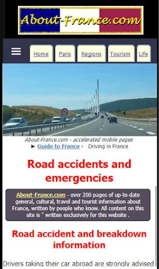 It includes information and advice on using (or not using) toll motorways, and vital advice for what to do in the improbable event of an accident or breakdown on the road in France.