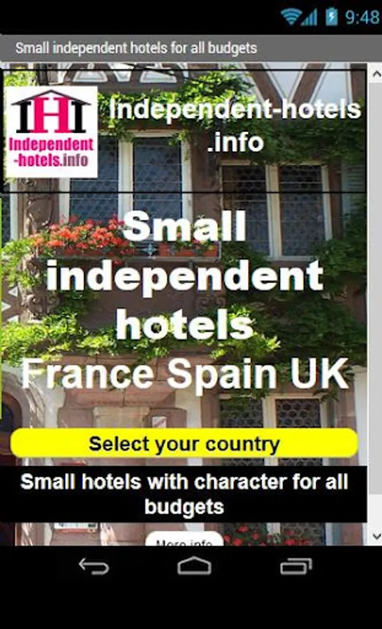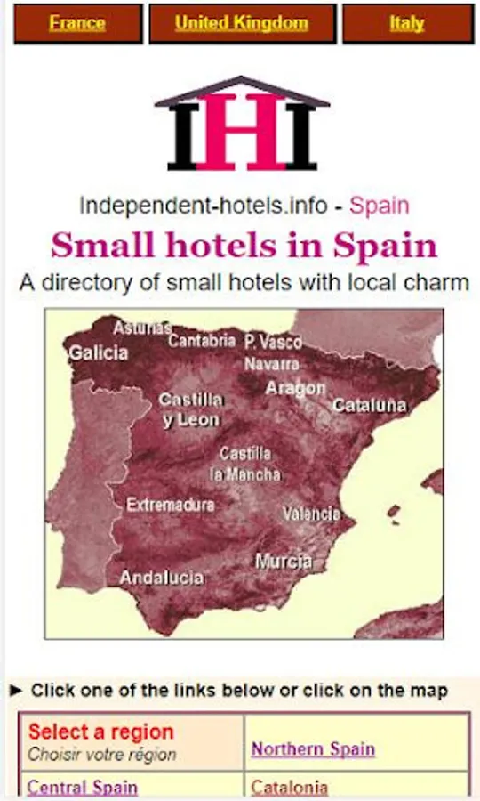 This free app from iHi - independent-Hotels.info - provides access to a unique selection of small independent hotels in France, Spain and the UK.