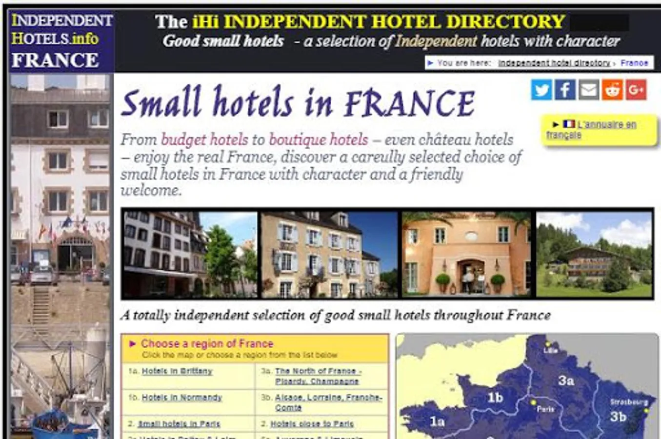 All hotels in this directory have been chosen on account of their good qualities and their good user reviews. This is not just another directory of expensive luxury hotels; the iHi directory includes a range of small independent hotels in all price brackets except the ultra-expensive, and properties in the directory vary from some delightful unclassed "hostals" in Spain, where rooms can be had in 2017 for less than 40€ a night, up to some good-value five-star boutique hotels in out-of-the way spots in France.