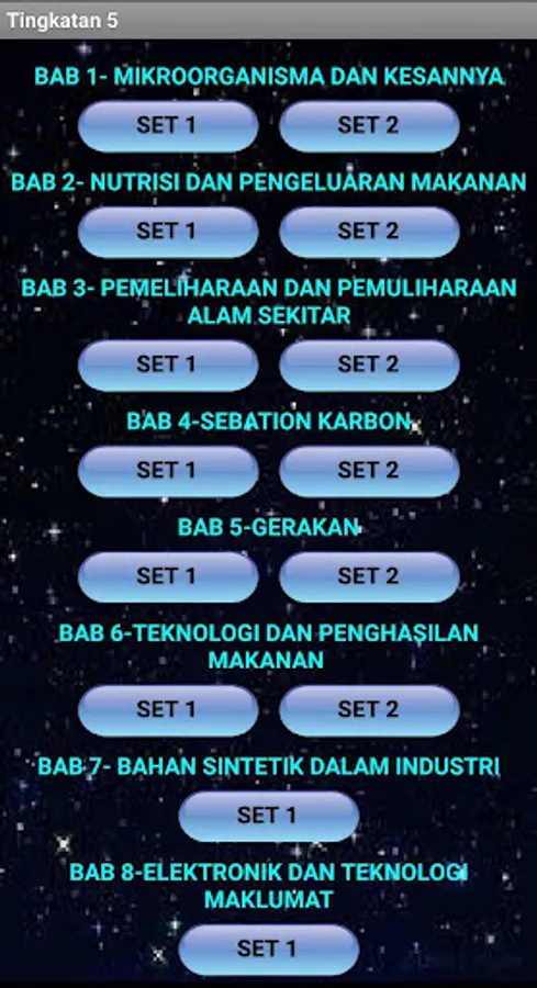 aplikasi ini memuatkan kuiz dan latih tubi kertas 1 bagi matapelajaran sains teras SPM.
