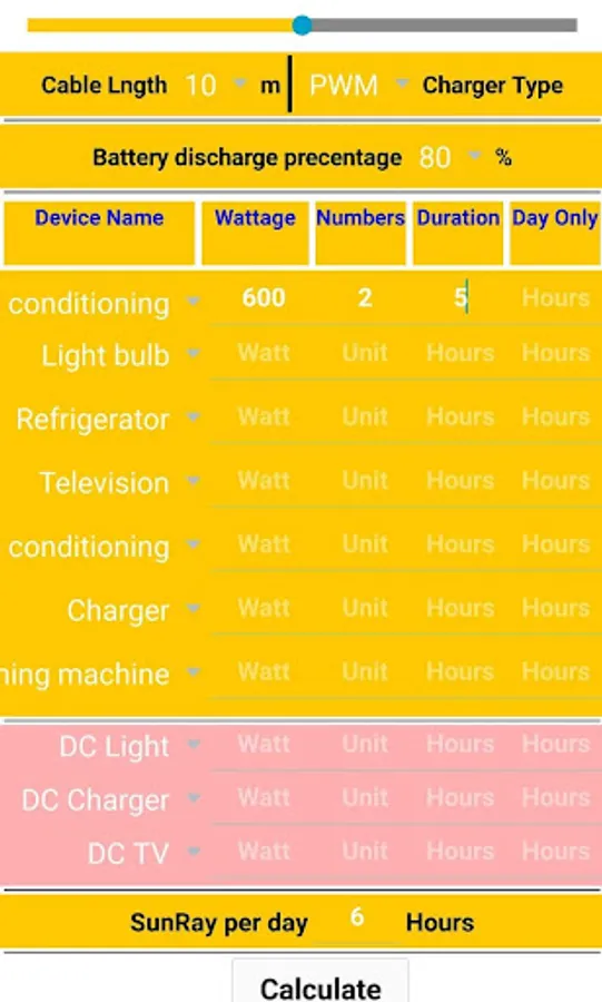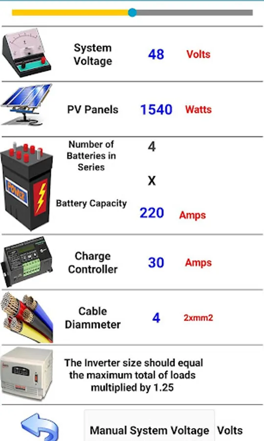 - Calculate PV Solar power system elements based on loads and PV panels size.