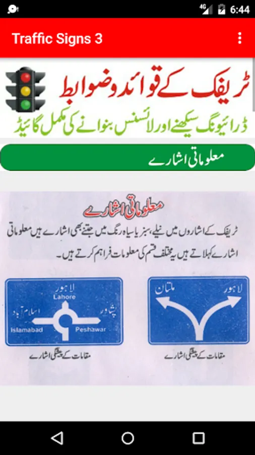 Traffic Signs Pakistan works offline and online is the best app to learn traffic signs and rules in Urdu for driving licenses of cars, motorcycles. LTV, HTV, PSV and car jeep. All Traffic Sings and other guidelines are described in Urdu with all necessary instructions provided by City Traffic Police and Motorway Licensing Authority.