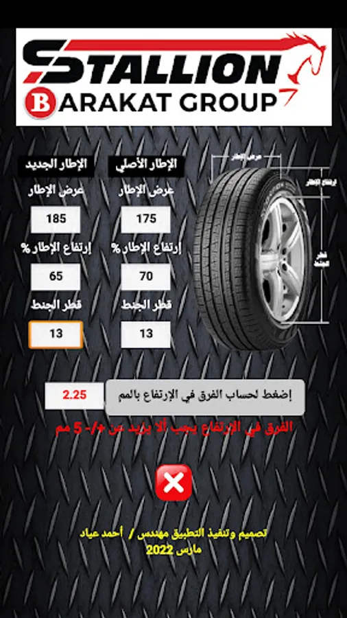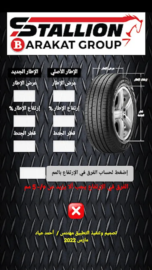 Simple application for calculating the amount of change in tire height size when adjusting tire sizes.