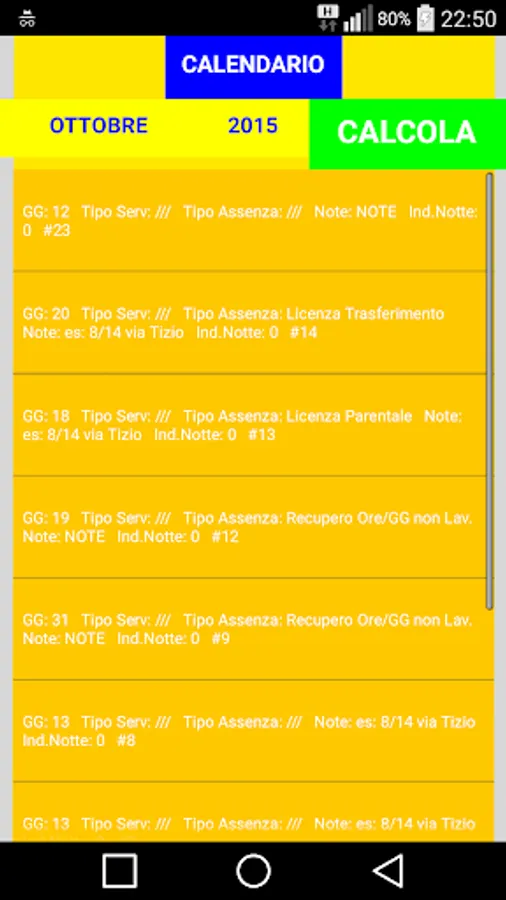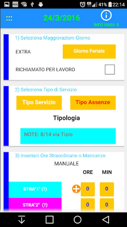 - 3 types of strain (FERIALE, NOTTURNO and FESTIVO)