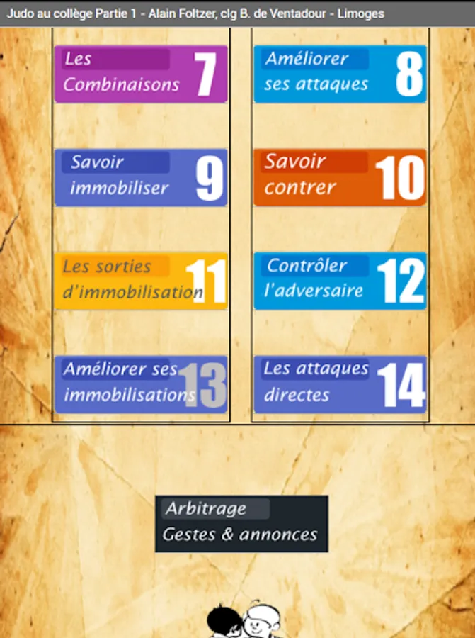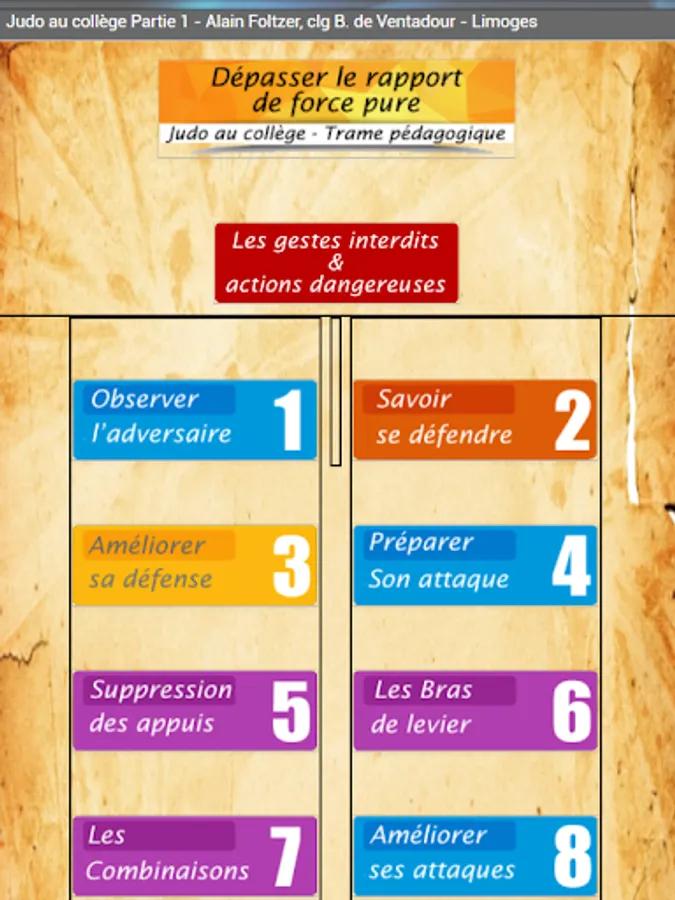 It is composed of a series of 2-minute videos on average capsules, along with video exercises, for an entry in the activity Judo ground in CM and college (Cycle 3 of the reform).