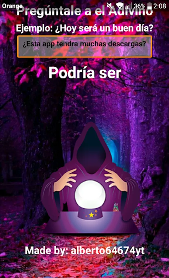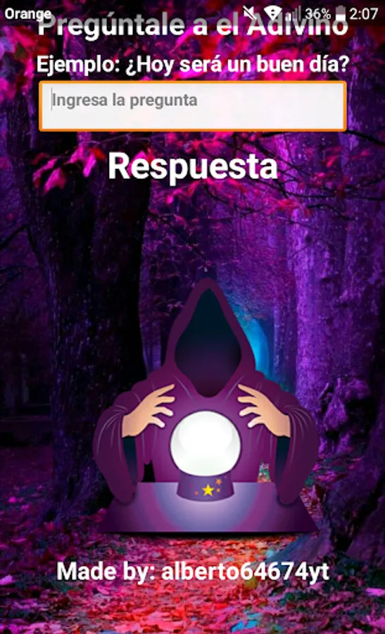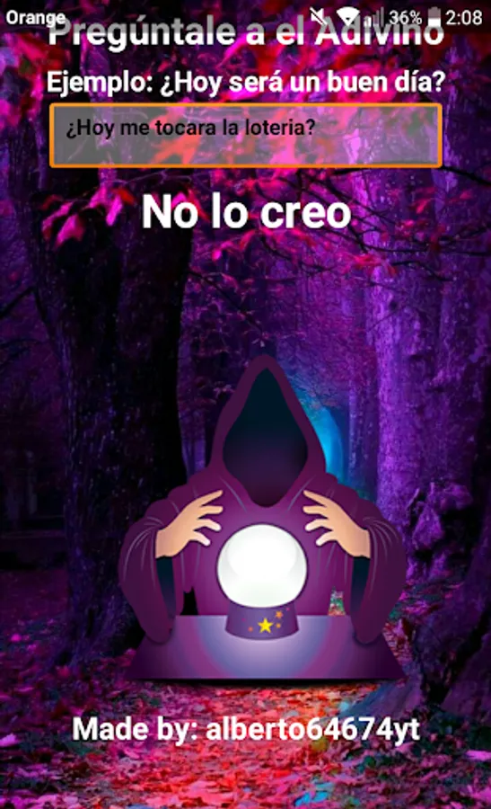 Ask any question to the great fortune-teller and he will answer you in a short way for example: Yes, No, Maybe ... and so you can leave doubts and / or have fun with the Answers