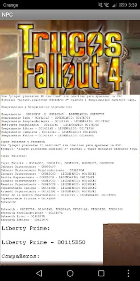 Enjoy your experience in Fallout 4 with commands, since with this app you will have all at hand and completely offline no mobile data or wifi will be required to use this app!