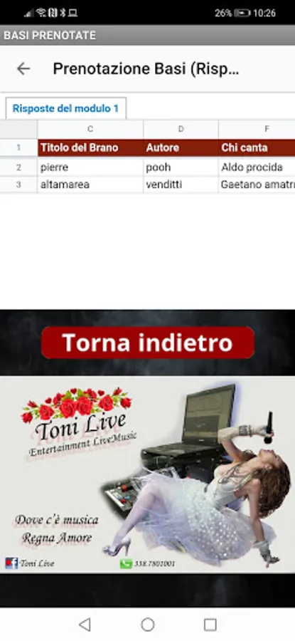 The user can book the backing track and send it to the DJkaraoke, which in turn puts it on the list.