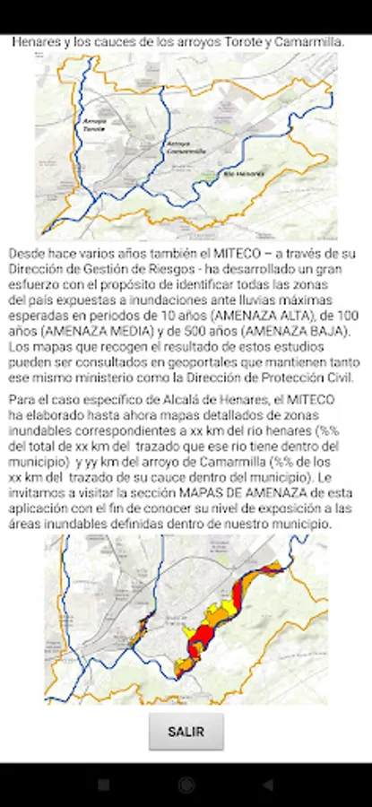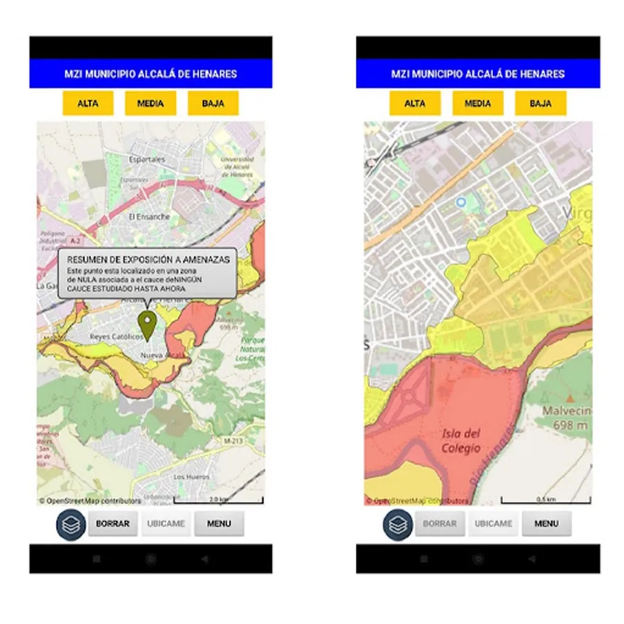 This application provides georeferenced information on the level of specific exposure to potentially floodable urban areas that have been identified in the city of Alcalá de Henares (Spain) as well as on the individual actions that could be taken to reduce this type of risk.
