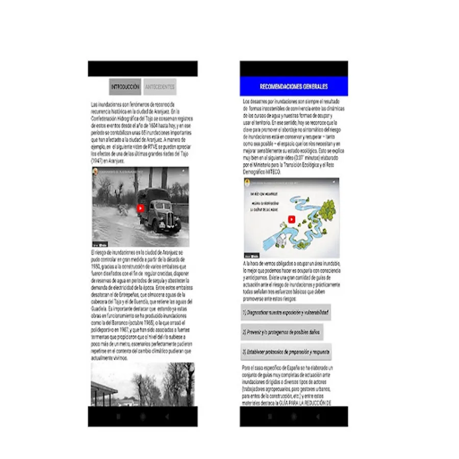This application provides local data on exposure to flood zones that have been defined within the urban spaces of the city of Aranjuez (Spain), as well as recommendations that the inhabitants of that city could follow in order to reduce their risk levels and be prepared to act in the event of disasters associated with extreme rainfall.