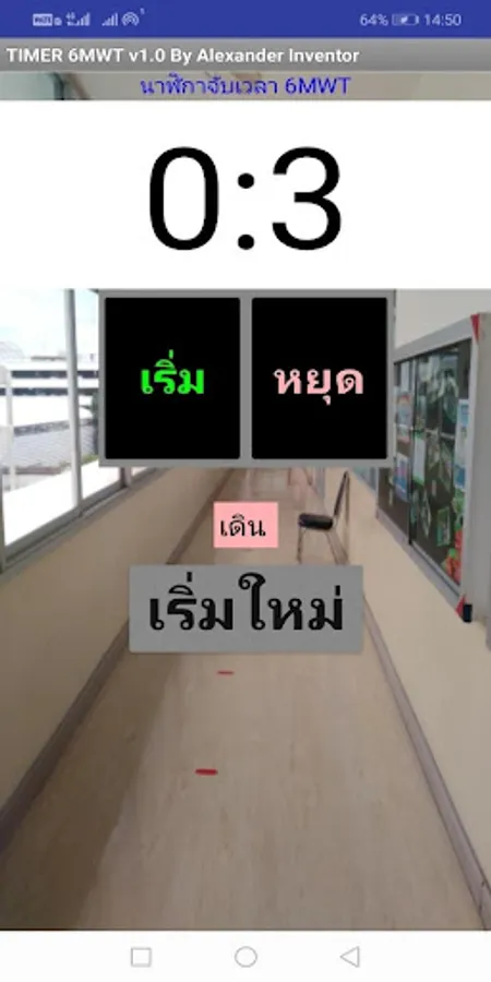 Program for a 6 minutet stopwatch (Six minute walk test) according to guideline ATS2002