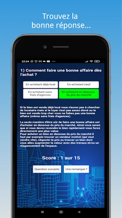 To learn how to invest in real estate for free and while having fun, SAVOIR IMMO is the application for you.
