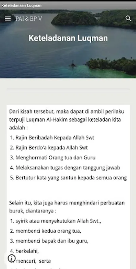 This application is a teaching material Pendid Islam and Budi Pekrti Class V Elementary School Second Semester.