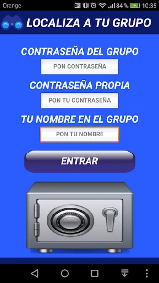 1-Fills the group password (common password for all members of group 5 characters), the own password (one for each member password), and your name in the group (name with which you identify in the group).