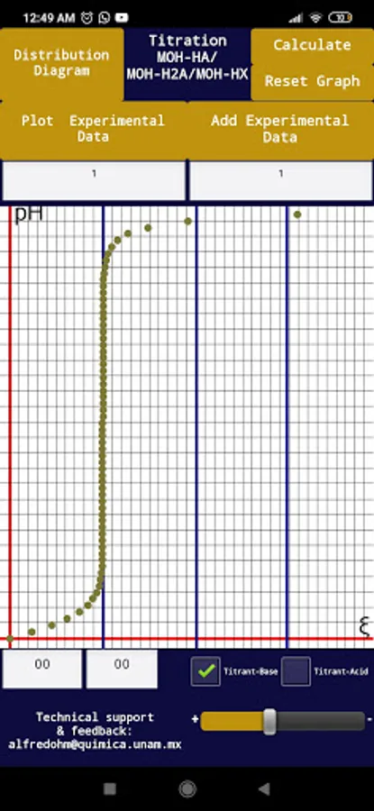 This app is useful to calculate titration curve straightforward, also can obtain the distribution diagram for the monoprotic or diprotic acid. You can upload your experimental data through googlesheet shared link. Graph your experimental data and compare with the theoretical curve.