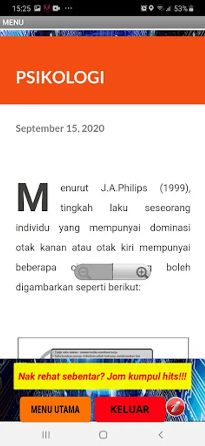 Aplikasi ini adalah untuk menerangkan tips penjagaan otak dan juga emosi . Beberapa ujian disertakan di dalam aplikasi ini untuk anda mengetahui personaliti dan jenis pemikiran anda.
