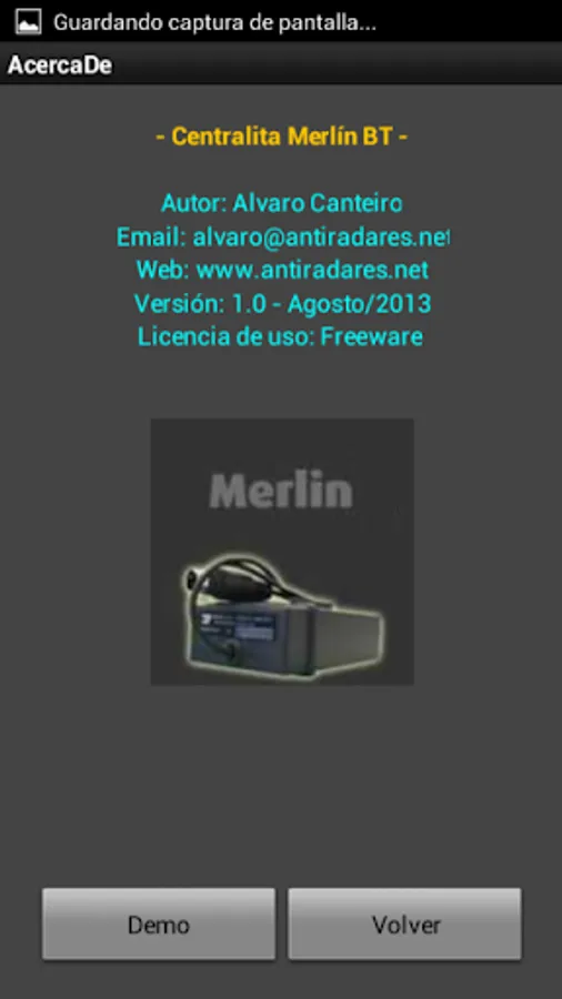 From PortalVasco.com offer the control unit for detectors of Demac Merlin Bluetooth. For now it is an early version and may contain an error, please be to used with care and only in a test environment. We disclaim any responsibility for the misuse or failure of this application. By downloading and using this application accept our terms of use.