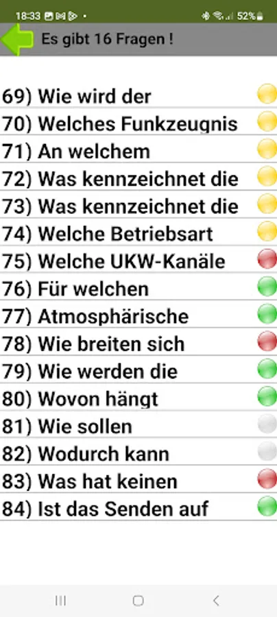 Keep the full overview in learning mode. Learn all official questions based on a modern traffic light system. If the question is white or red, you still have to practice. If it's green, you're ready for the exam.