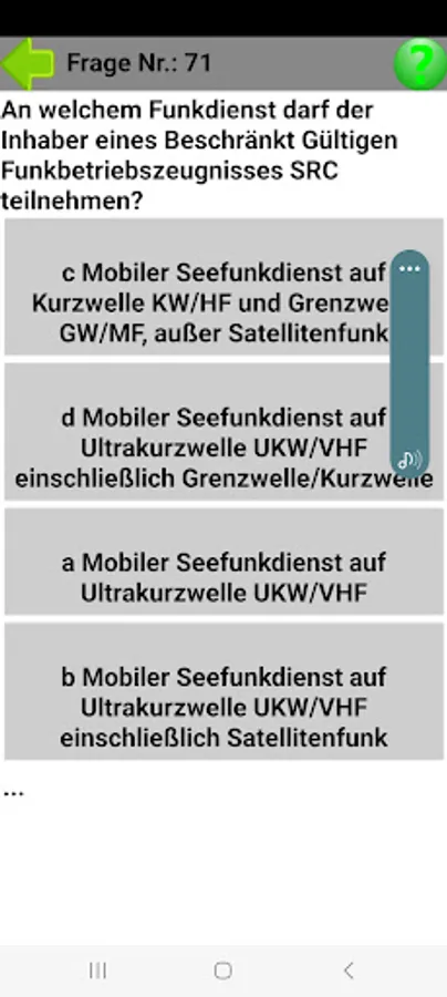 This app supports you in the SRC radio test, for the limited valid radio operating certificate, SRC for short.