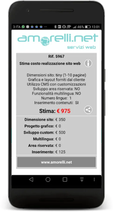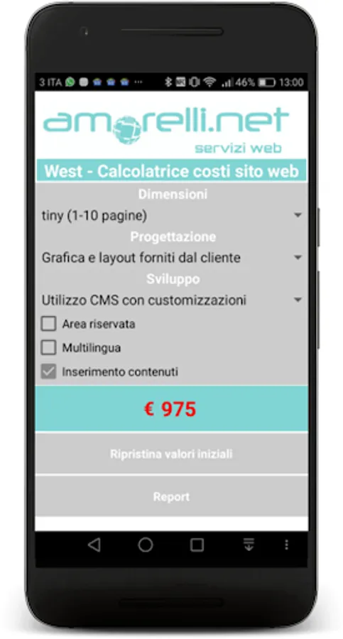 App to estimate the cost to build a website using a CMS (Wordpress, Joomla, etc.). The estimated costs are related to the theme chosen configuration, customization of the theme, the graphic design and the inclusion of content in relation to the size of the site (in number of pages) and its functionality.