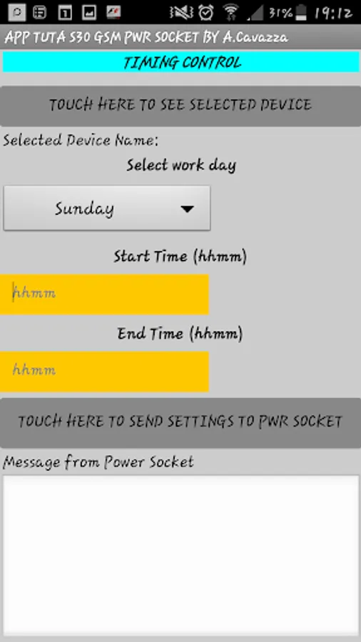 - Timed switching on the output socket (day week, start and stop hour selection.