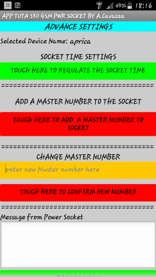- Add, change the mobile number to MASTER socket, regulation of the socket time