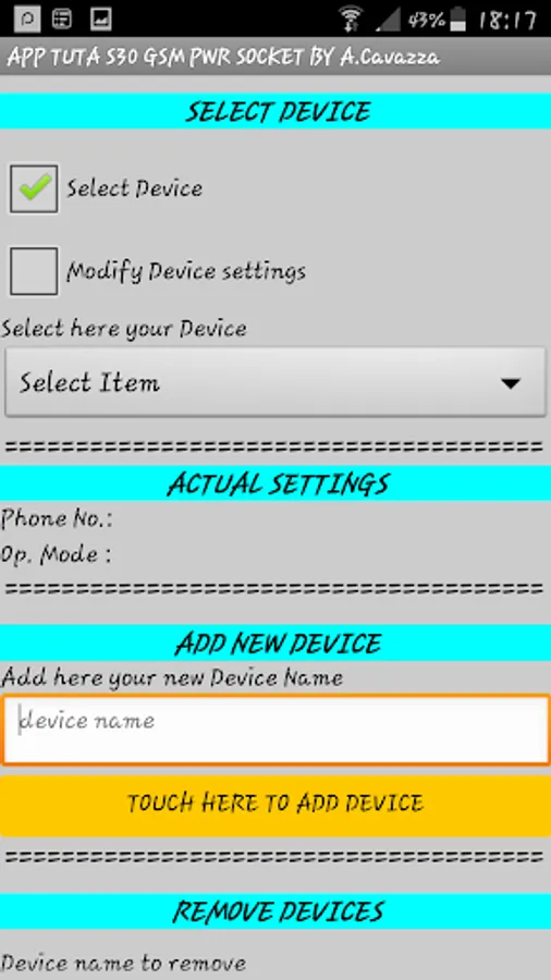 - In the "Select & add new device" display the different function groups (select device, add new devices, remove devices) are separated with a lines.